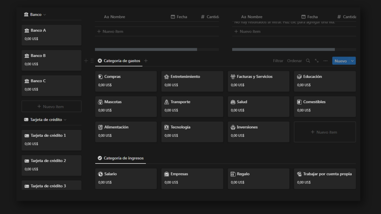 "Domina tus finanzas con nuestra plantilla en Notion. Registra ingresos, gastos, ahorros e inversiones con facilidad. Dashboard personalizado, presupuestos, metas financieras y más. Toma decisiones informadas y avanza hacia la libertad financiera. Descarga digital, requiere cuenta en Notion."