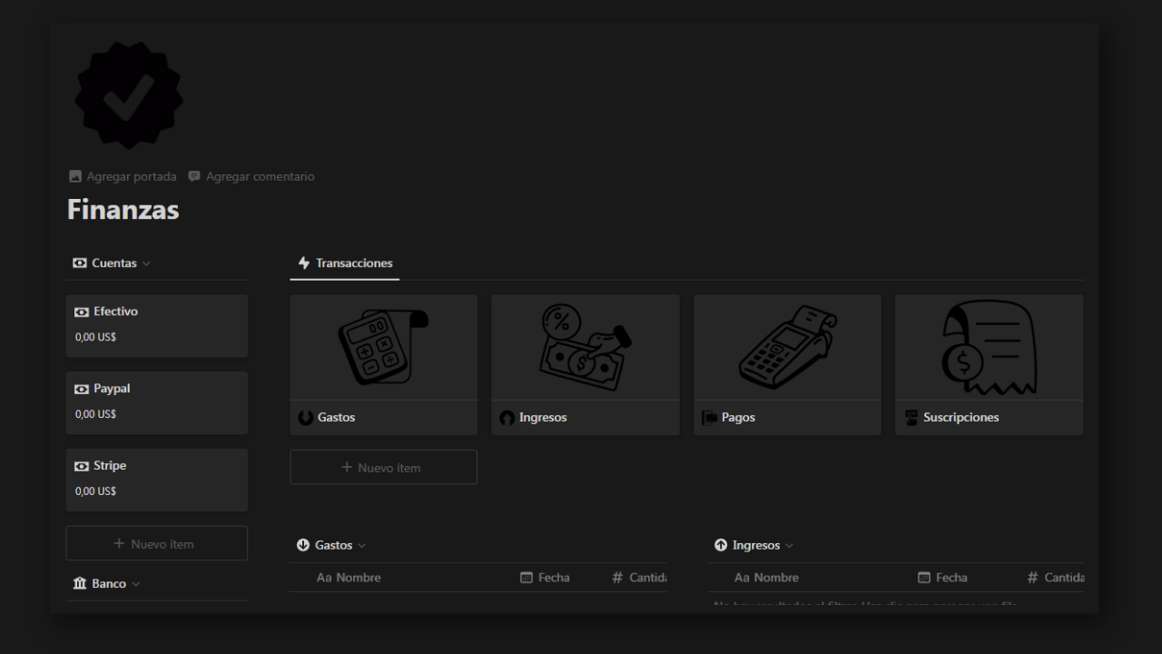 Domina tus finanzas personales y toma el control de tu futuro financiero con nuestra completa plantilla de Finanzas Personales en Notion. Esta plantilla cuidadosamente diseñada te brinda las herramientas que necesitas para visualizar, organizar y gestionar tus ingresos, gastos, ahorros e inversiones de manera efectiva.